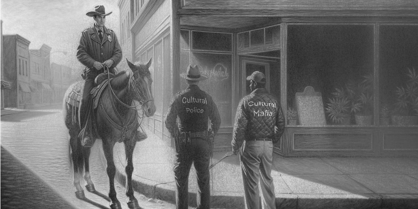 Culture offers criminal cartels voice under strict rules of controlling your gang leaders targets of exploitation. Our species is off limits for your thugs to terrorize, Small businesses are to be declared off limits to theft and all pedophiles are to have their balls removed.